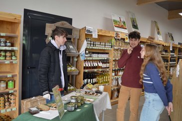 Pour marquer le coup d'envoi de cette animation, les élèves ont organisé des dégustations gratuites de produits du terroir. Les visiteurs ont pu découvrir les fromages de chèvres et de vaches, les pleurotes, les farines (grâce à de petits biscuits), … Tous les secrets de fabrication ont été expliqués.